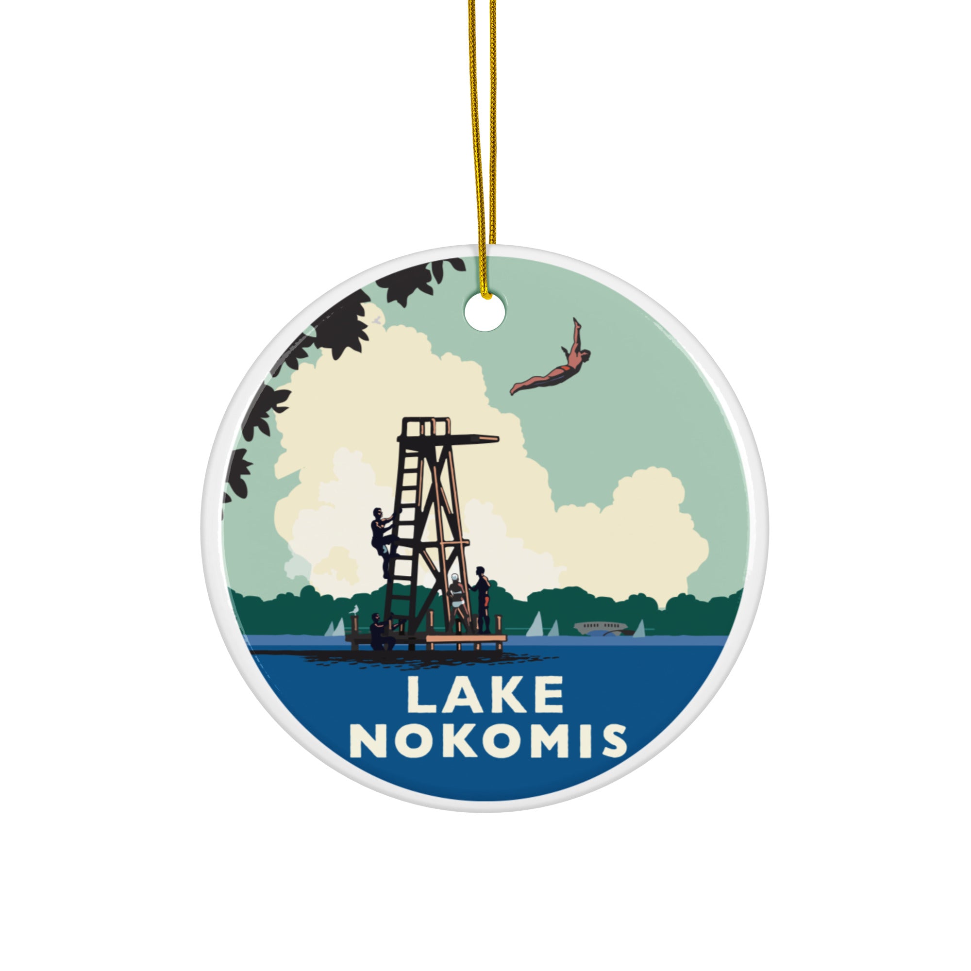Bring charm to your home with a glossy ceramic ornament with a smooth finish and elegant gold-toned string, it stands out in any festive setting.
