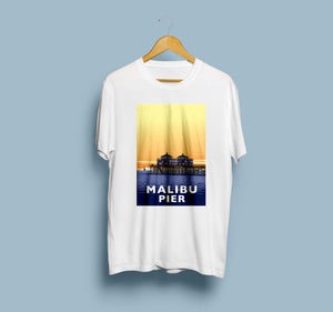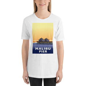 • Landmark CA | Malibu Pier Sunset White Unisex T-Shirt