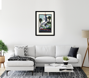 All of our art is original digital graphic art, these are not reproductions of vintage art. Giclée fine art open edition print on Epson heavy weight (10.3mil/192 gsm), archival matte paper, with Epson pigment ink. The colors here may appear different in printed form than on screen. Most of our prints include an off-white printed border, designed for framing with or without matting
