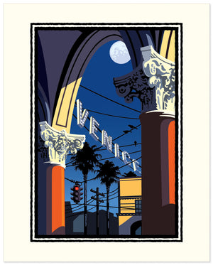 Spanning across Windward Avenue at Pacific, the VENICE Sign in lights is a modern day replica of the one originally installed in 1905 by the legendary Abbot Kinney.