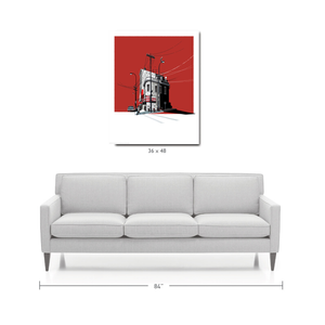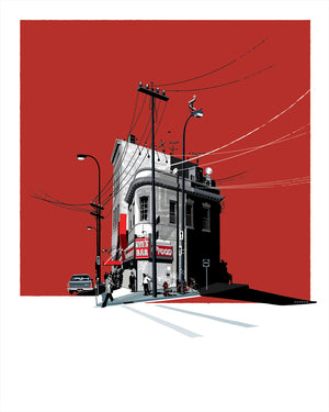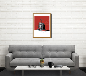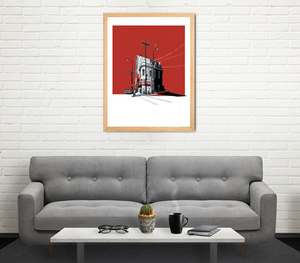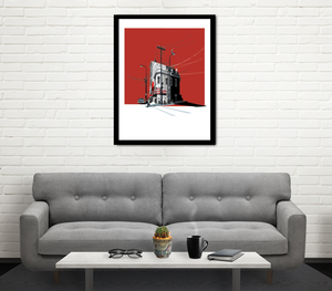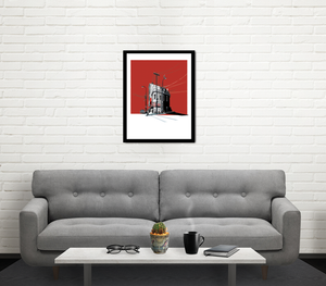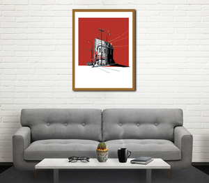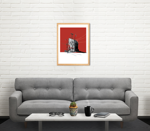 All of our art is original digital graphic art, these are not reproductions of vintage art. Giclée fine art open edition print on Epson heavy weight (10.3mil/192 gsm), archival matte paper, with Epson pigment ink. The colors here may appear different in printed form than on screen. The Landmark City prints have a stark-white border, designed for framing with or without matting.