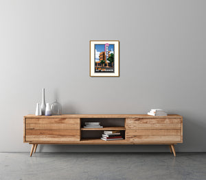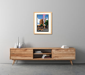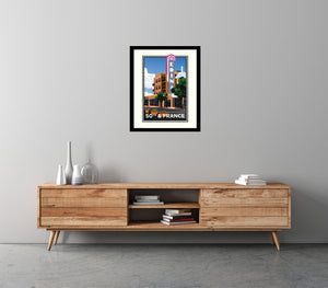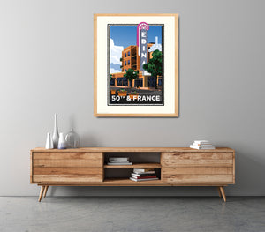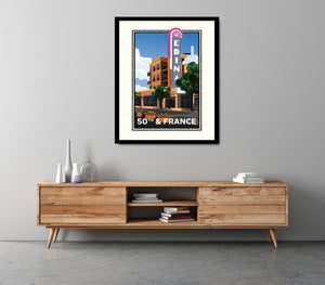 All of our art is original digital graphic art, these are not reproductions of vintage art. Giclée fine art open edition print on Epson heavy weight (10.3mil/192 gsm), archival matte paper, with Epson pigment ink. The colors here may appear different in printed form than on screen. Most of our prints include an off-white printed border, designed for framing with or without matting